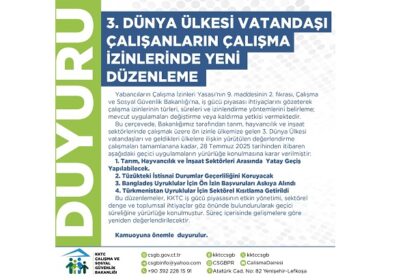 Çalışma ve Sosyal Güvenlik Bakanlığı, üçüncü dünya ülkesi vatandaşlarının, çalışma izinleri konusunda yeni düzenleme yaptı. Bakanlıktan yapılan açıklamaya göre, yeni düzenleme çerçevesinde tarım, hayv...