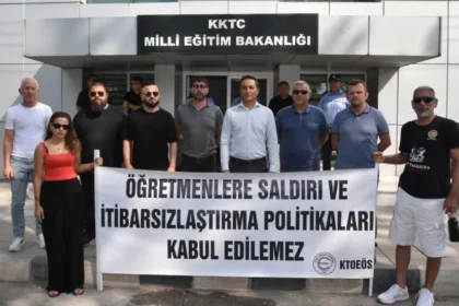 KTOEÖS, hizmet içi eğitimde öğretmenlere yönelik hakaret ve itibarsızlaştırma girişimlerini kınayarak, Milli Eğitim Bakanlığı önüne siyah çelenk bıraktı; KTOEÖS Genel Sekreter Tahir Gökçebel, “Okullar...