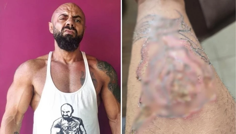 İşletmede sadece dövme rengini açtırmak amacıyla lazer uygulaması yaptıran Cenk Hoca, işlemin ardından kolunda üçüncü derece yanık oluştuğunu belirtti.