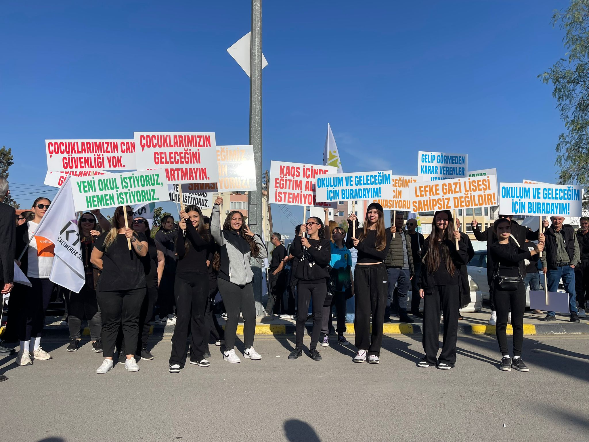 Eylemde veliler ve öğrenciler, “Kaos içinde eğitim almak istemiyoruz”, “Çocuklarımızın can güvenliği yok”, “Anıtlar Yüksek Kurulu’nun kararını kabul etmiyoruz” yazılı pankartlar açtı.