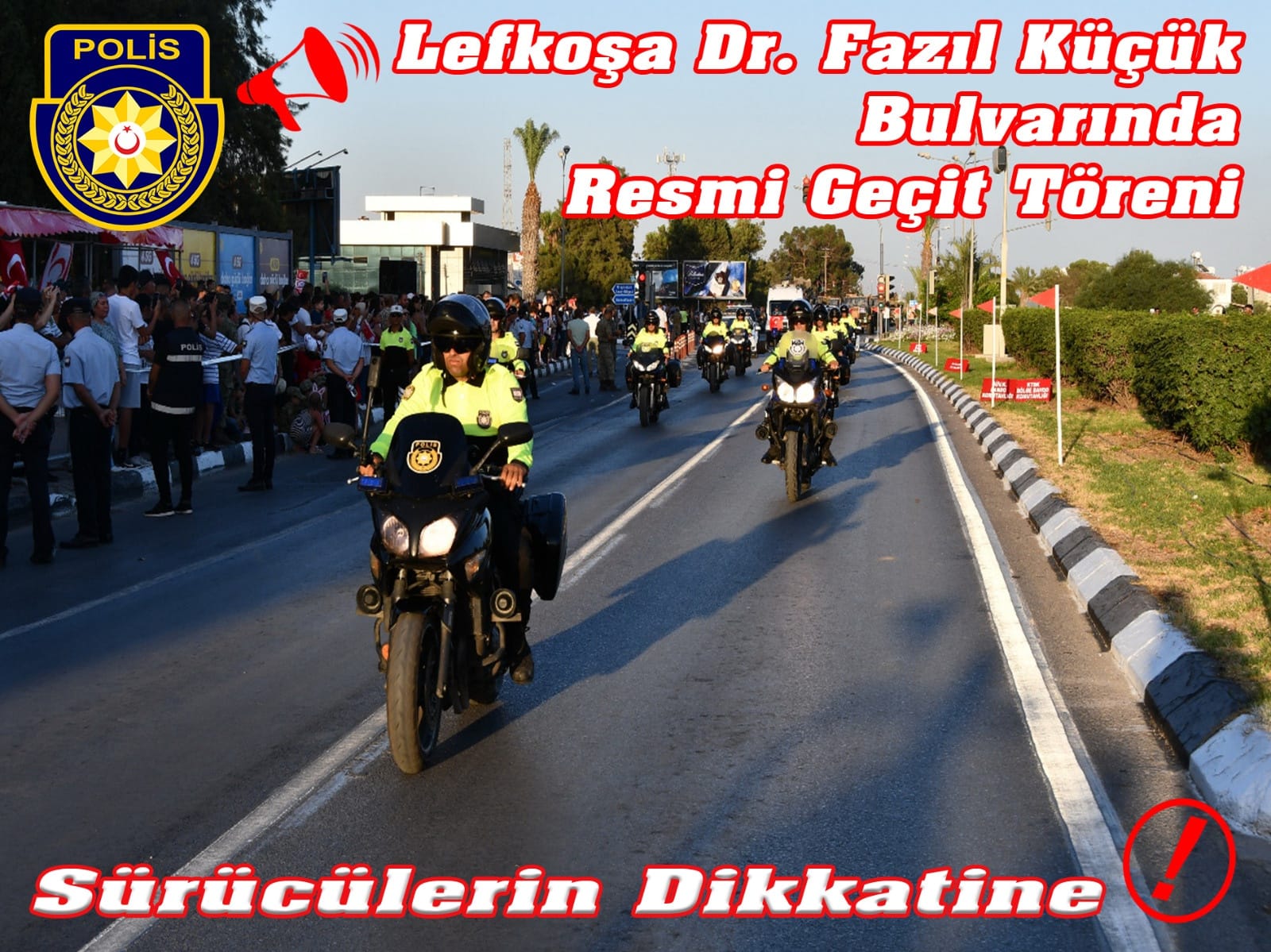 “Gazimağusa istikametinden gelip Yakın Doğu Üniversitesi’ne gitmek isteyen sürücüler için ulaşım, Lefkoşa Kuzey Çevre Yolu üzerinden Yakın Doğu Bulvarından sağlanacak. Gazimağusa istikametinden gelip Lefkoşa şehir içine gitmek isteyen sürücüler için ulaşım; Hamitköy Çemberinden sola dönüp, Mimar Mehmet Vahip Caddesi ile Şht. İsmail Beyoğlu Caddesi veya Honda Trafik Işıkları Kavşağı’ndan sola dönerek Şht. Mustafa Ahmet Ruso Caddesi üzerinden sağlanacak. Gazimağusa istikametinden gelip Güzelyurt istikametine gitmek isteyen sürücüler için ulaşım; Lefkoşa Kuzey Çevre Yolu üzerinden Gönyeli Çemberi güzergahı veya Lefkoşa Mehmet Akif Caddesi üzerinde bulunan Citröen Trafik Işıkları Kavşağı’ndan, Metehan-Alayköy Çevre Yolu üzerinden sağlanacak. Güzelyurt istikametinden gelip Lefkoşa istikametine gitmek isteyen sürücüler için ulaşım; Alayköy-Metehan Çevre Yolu veya Gönyeli Çemberi ile Dr. Burhan Nalbantoğlu Caddesi (Devlet Hastanesi) güzergahı üzerinden sağlanacak. Girne istikametinden gelip Lefkoşa istikametine gitmek isteyen sürücüler için ulaşım; Girne-Lefkoşa Anayolu Gönyeli Çemberi ile Dr. Burhan Nalbantoğlu Caddesi (Devlet Hastanesi) güzergahı üzerinden sağlanacak.”