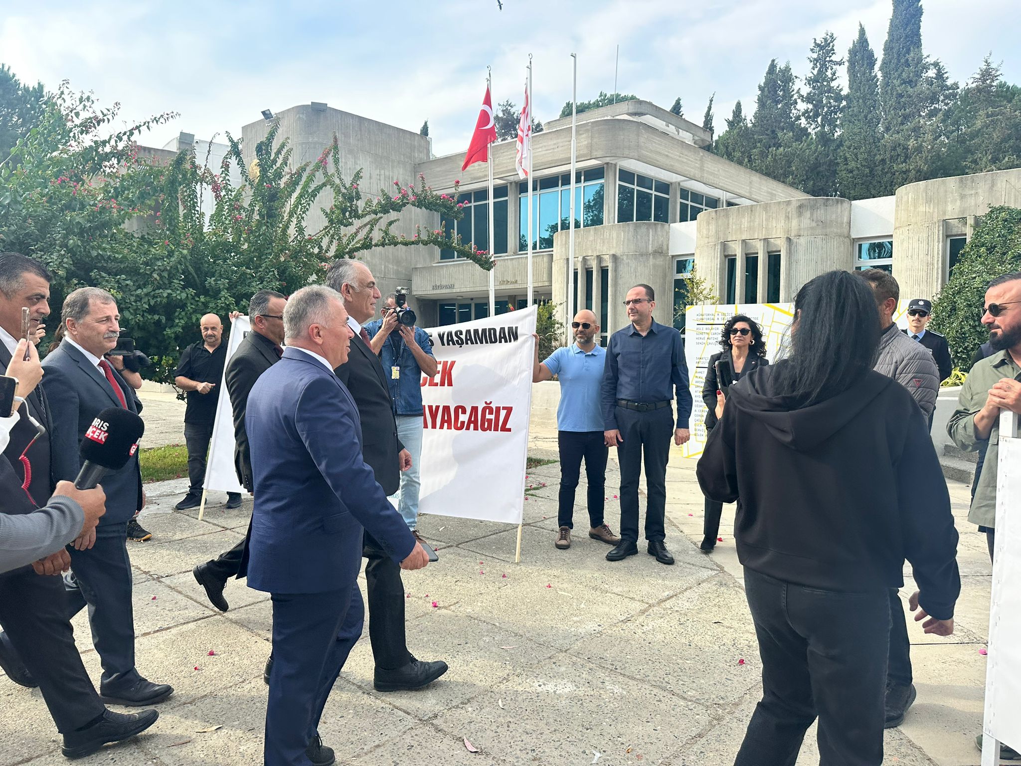 Kıbrıs Türk Öğretmenler Sendikası (KTÖS) ve Kıbrıs Türk Orta Eğitim Öğretmenler Sendikası (KTOEÖS) 24 Kasım Öğretmenler Günü nedeniyle tören yapılan Atatürk Kültür Merkezi (AKM) önünde eylem düzenledi.